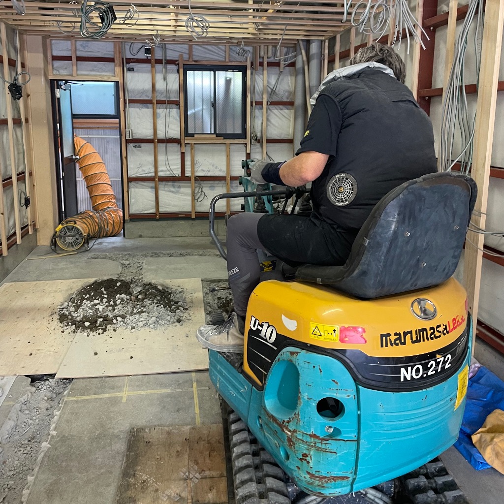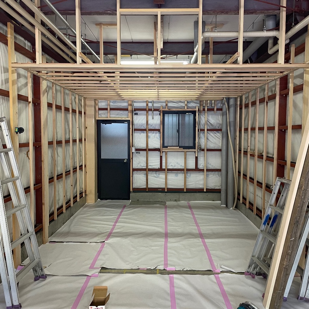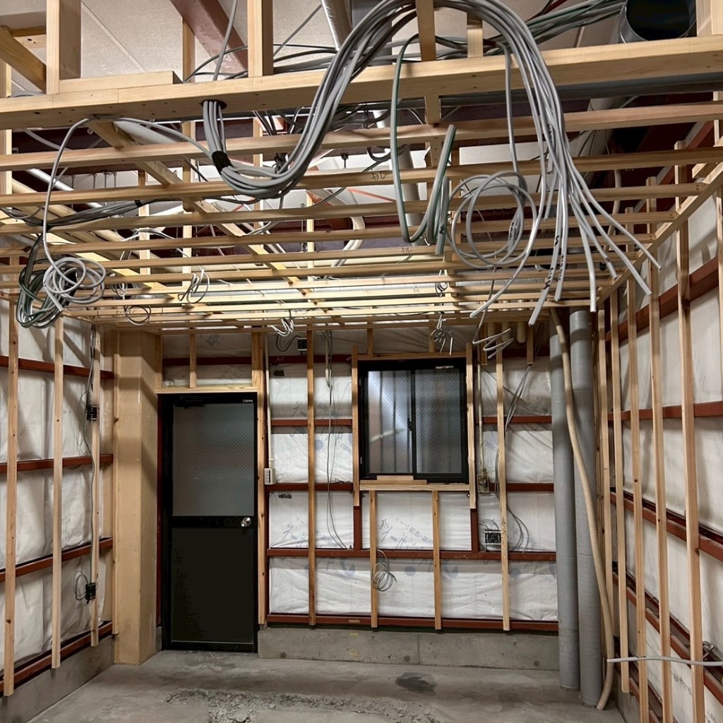 今回の現場では無垢の化粧物はこの枠材のみ、他の仕上げは建材を素地で使用していくので、どのように調和していくか、あるいは対比となるのか、個人的に楽しみな部分になります。