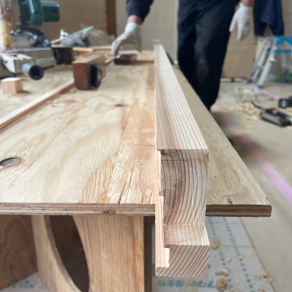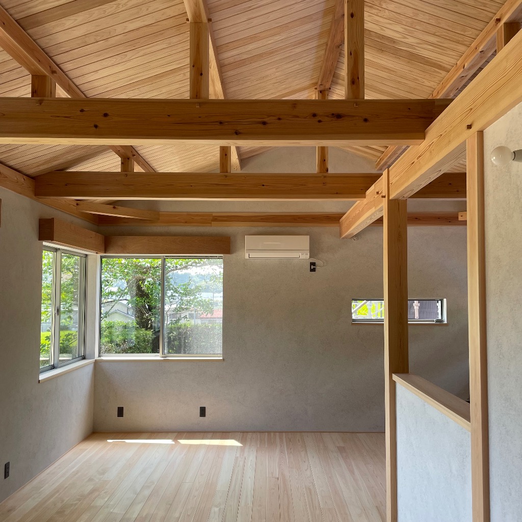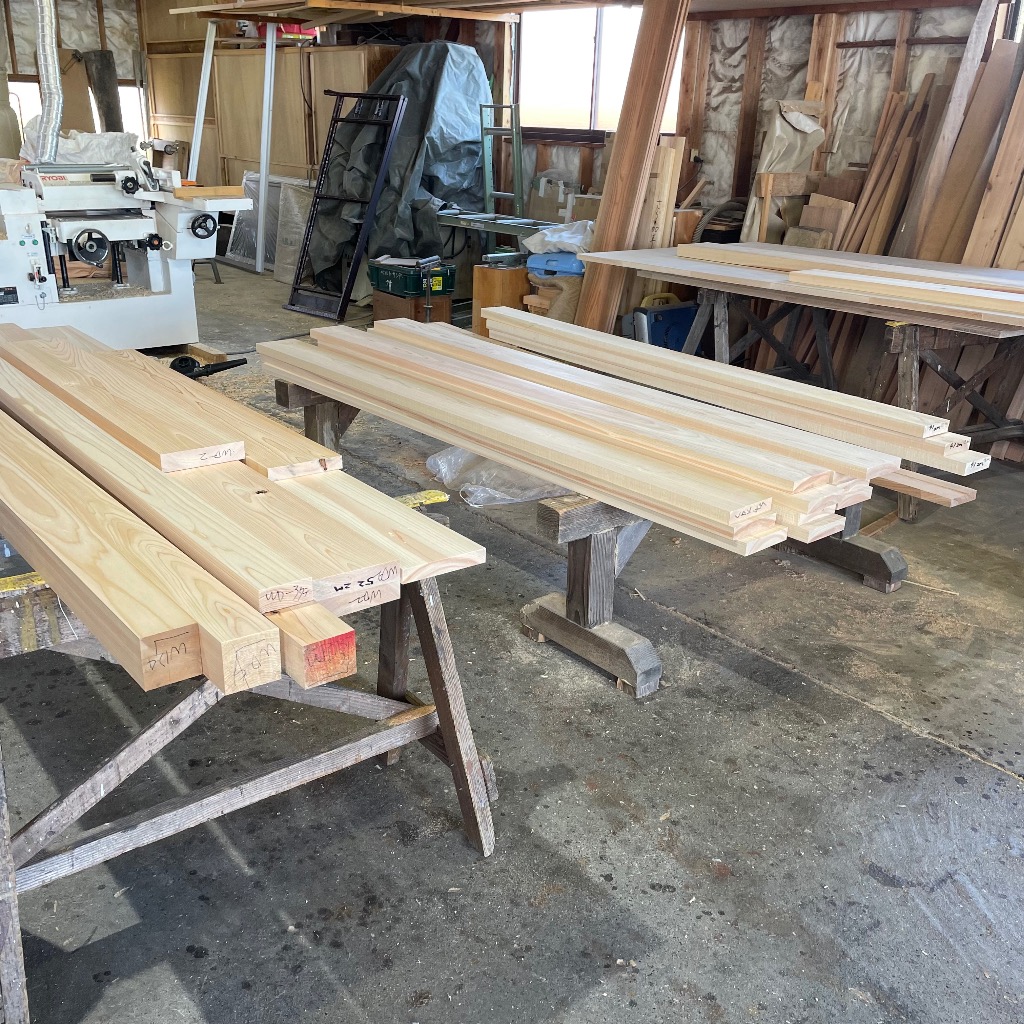 この建物は静岡県産材を使い手刻みで建てさせて頂きました。プレカットとの違いをざっくり言うと、大工が建物を構成する全ての材に目を通し、材の性質をふまえ適材適所に配置し継ぎ手や仕口を加工していく点です。そのためプレカットよりコストは上がります。しかし一つ一つの構造の全てに大工が責任を持って仕事をします。昔から建前の前の晩は不安で眠れないとよく話題にありました。最近では構造はプレカット屋、間違いがあればプレカット工場から作業員が直しにくる。そのため大工が構造に責任を持つことが少なくなりました。その弊害は職人の知識や技能の低下として少しづつ現れているのではないかと思っています。社会状況からみても短期的な利益を取らざるを得ないことも重々分かります。それでも今回のように職人の手仕事に興味と理解を持ってくれる施主は本当にありがたいです。このような応援してくれる人たちに報いるためにも技術や建築文化の継承のため、少しでも多く職人の手仕事を続けて行きたいと思っています。